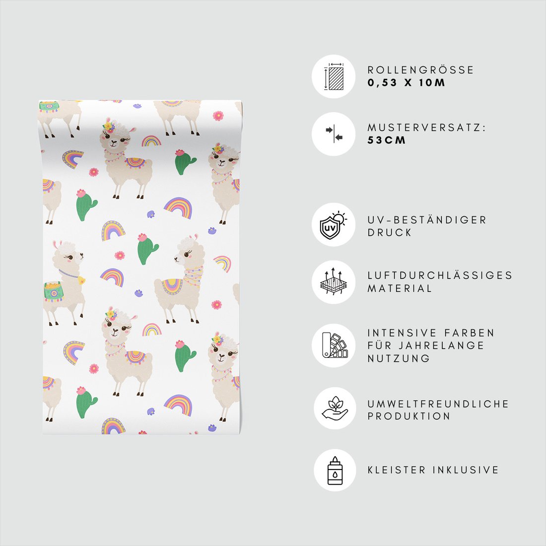 Odkryj piękno i funkcjonalność tapety z motywem dziecięca, lama, kaktus, tęcza. To połączenie wyjątkowego wzornictwa z łatwością aplikacji, doskonałe do każdego pomieszczenia.