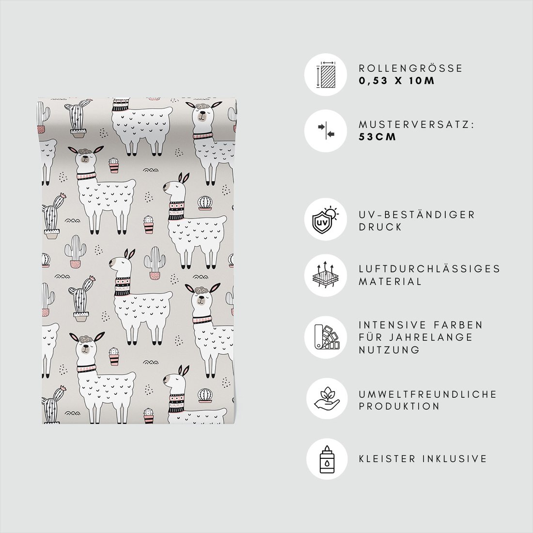 Odkryj piękno i funkcjonalność tapety z motywem dziecięca, lama, kaktus, wzór. To połączenie wyjątkowego wzornictwa z łatwością aplikacji, doskonałe do każdego pomieszczenia.