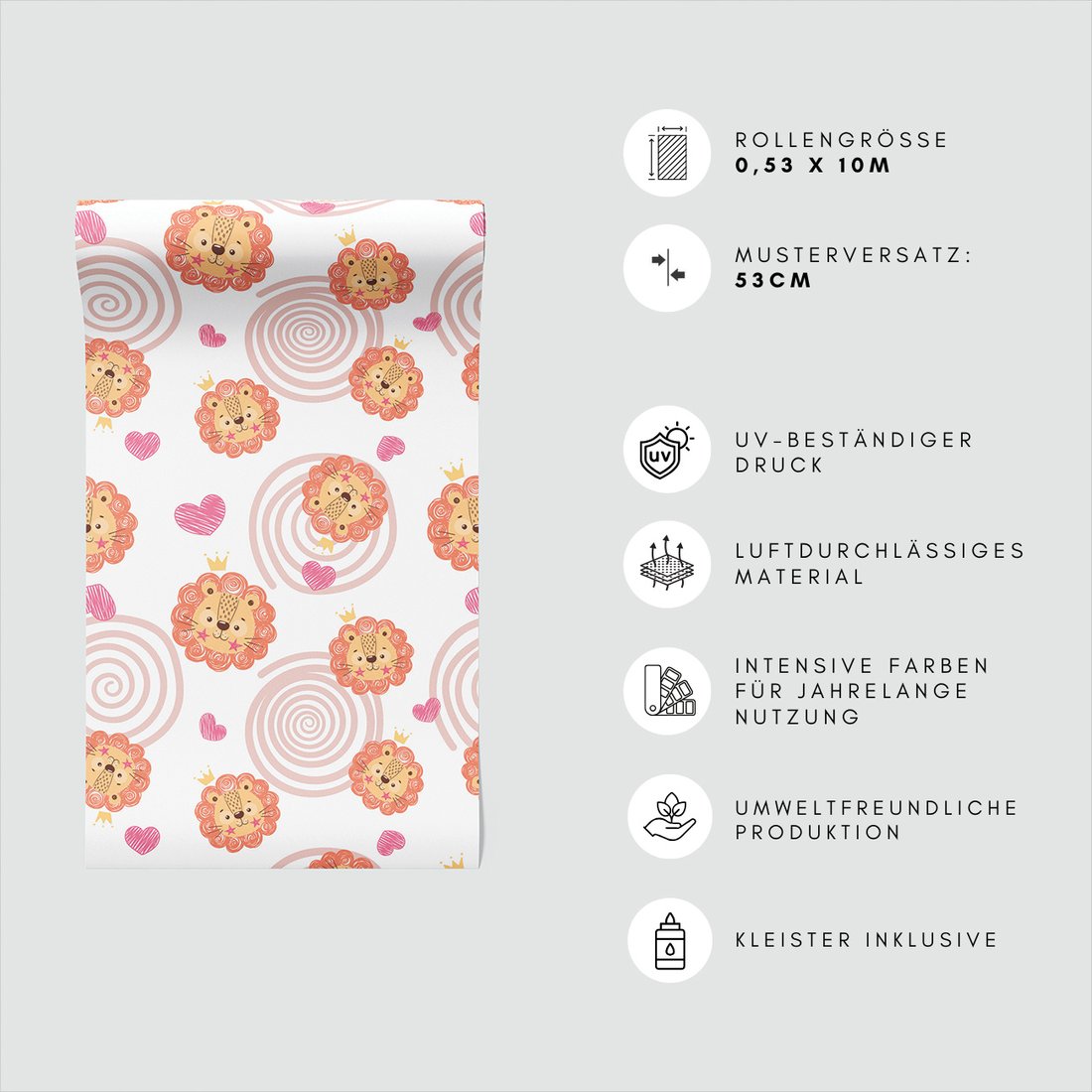 Odkryj piękno i funkcjonalność tapety z motywem dziecięca, lew, korona, serce. To połączenie wyjątkowego wzornictwa z łatwością aplikacji, doskonałe do każdego pomieszczenia.