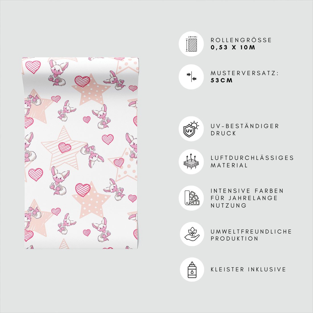 • Tapeta - dziecięca, lis, gwiazda, serce