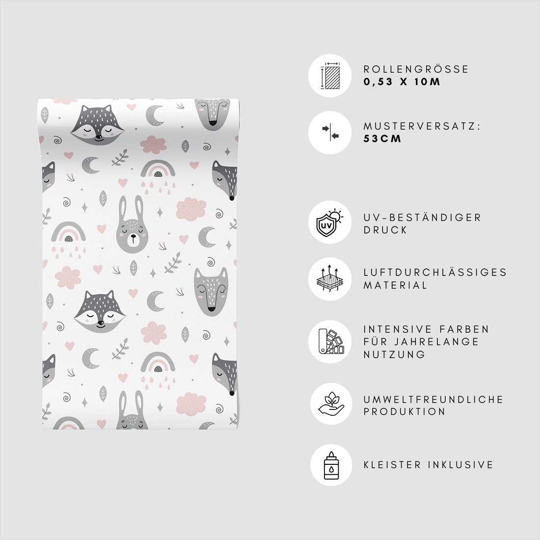 Odkryj piękno i funkcjonalność tapety z motywem dziecięca, lisy, królik, chmury. To połączenie wyjątkowego wzornictwa z łatwością aplikacji, doskonałe do każdego pomieszczenia.