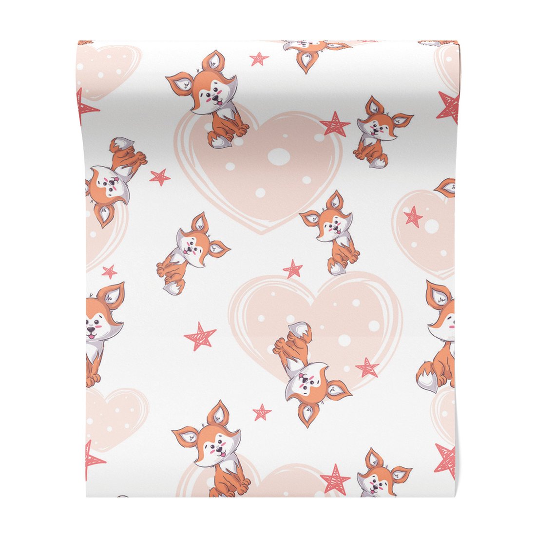 Tapeta - dziecięca, lisy, serca, gwiazdy
