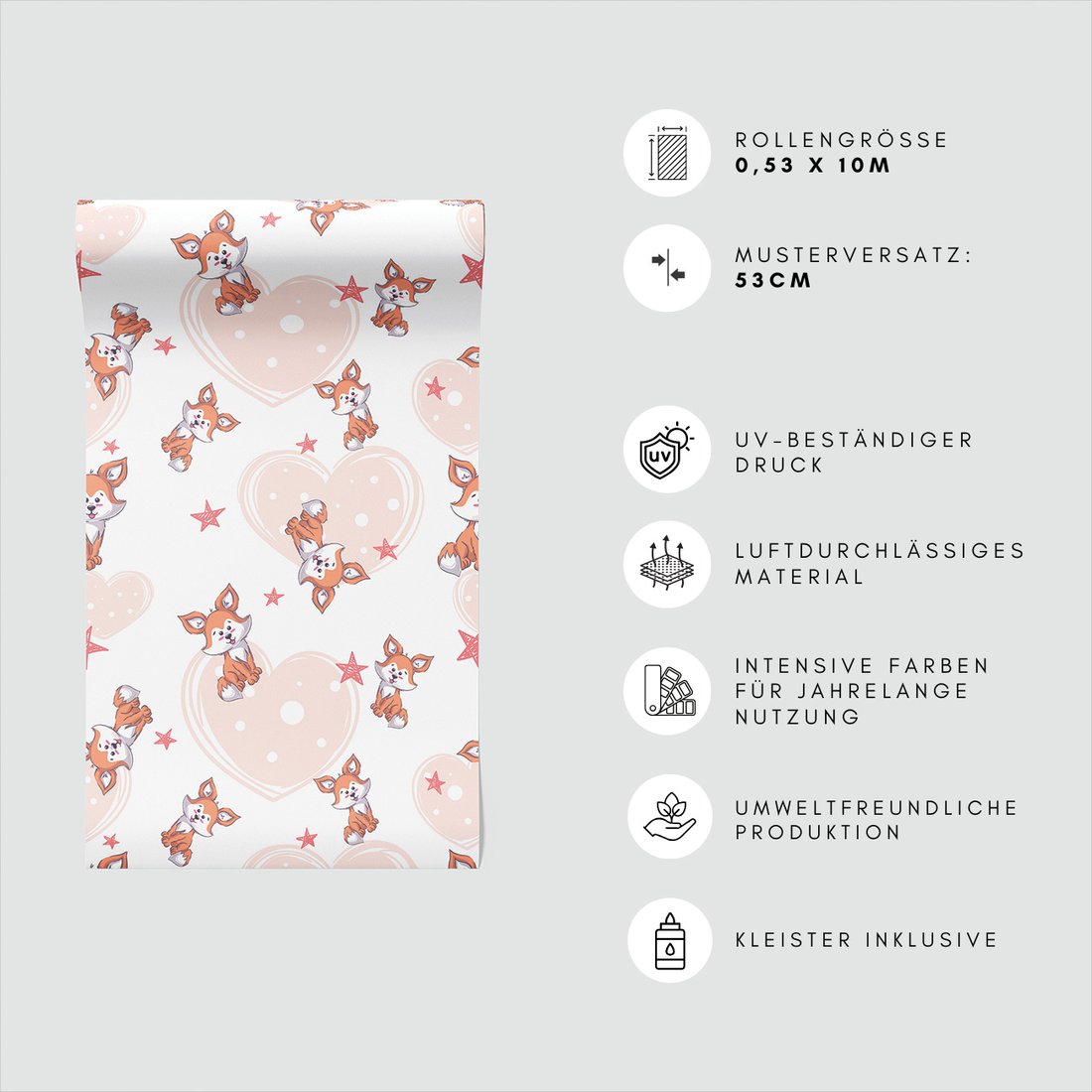 Odkryj piękno i funkcjonalność tapety z motywem dziecięca, lisy, serca, gwiazdy. To połączenie wyjątkowego wzornictwa z łatwością aplikacji, doskonałe do każdego pomieszczenia.
