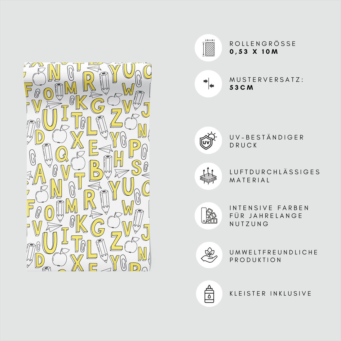 Odkryj piękno i funkcjonalność tapety z motywem dziecięca, litery, ołówki, jabłka. To połączenie wyjątkowego wzornictwa z łatwością aplikacji, doskonałe do każdego pomieszczenia.