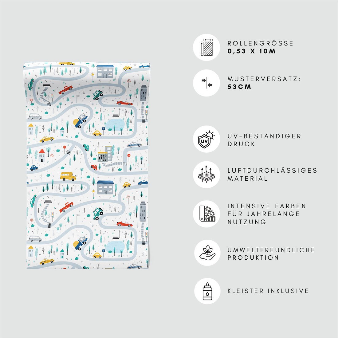Odkryj piękno i funkcjonalność tapety z motywem dziecięca, miasto, samochody, drzewa. To połączenie wyjątkowego wzornictwa z łatwością aplikacji, doskonałe do każdego pomieszczenia.