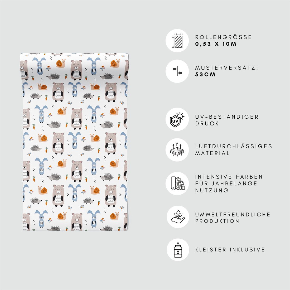 Odkryj piękno i funkcjonalność tapety z motywem dziecięca, miś, królik, jeż. To połączenie wyjątkowego wzornictwa z łatwością aplikacji, doskonałe do każdego pomieszczenia.