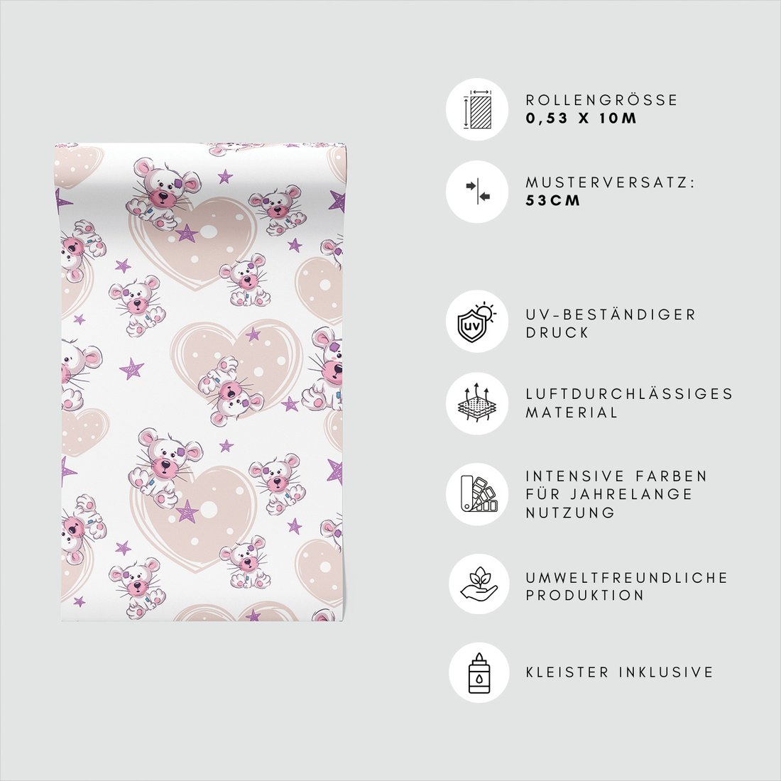 Odkryj piękno i funkcjonalność tapety z motywem dziecięca, mysz, serce, gwiazda. To połączenie wyjątkowego wzornictwa z łatwością aplikacji, doskonałe do każdego pomieszczenia.
