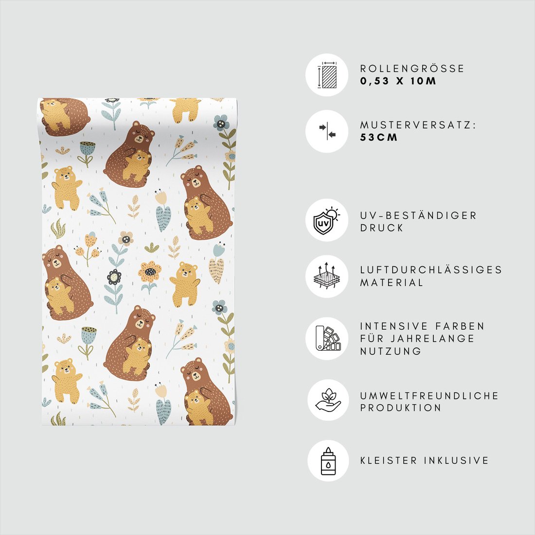Odkryj piękno i funkcjonalność tapety z motywem dziecięca, niedźwiedź, matka, kwiaty. To połączenie wyjątkowego wzornictwa z łatwością aplikacji, doskonałe do każdego pomieszczenia.