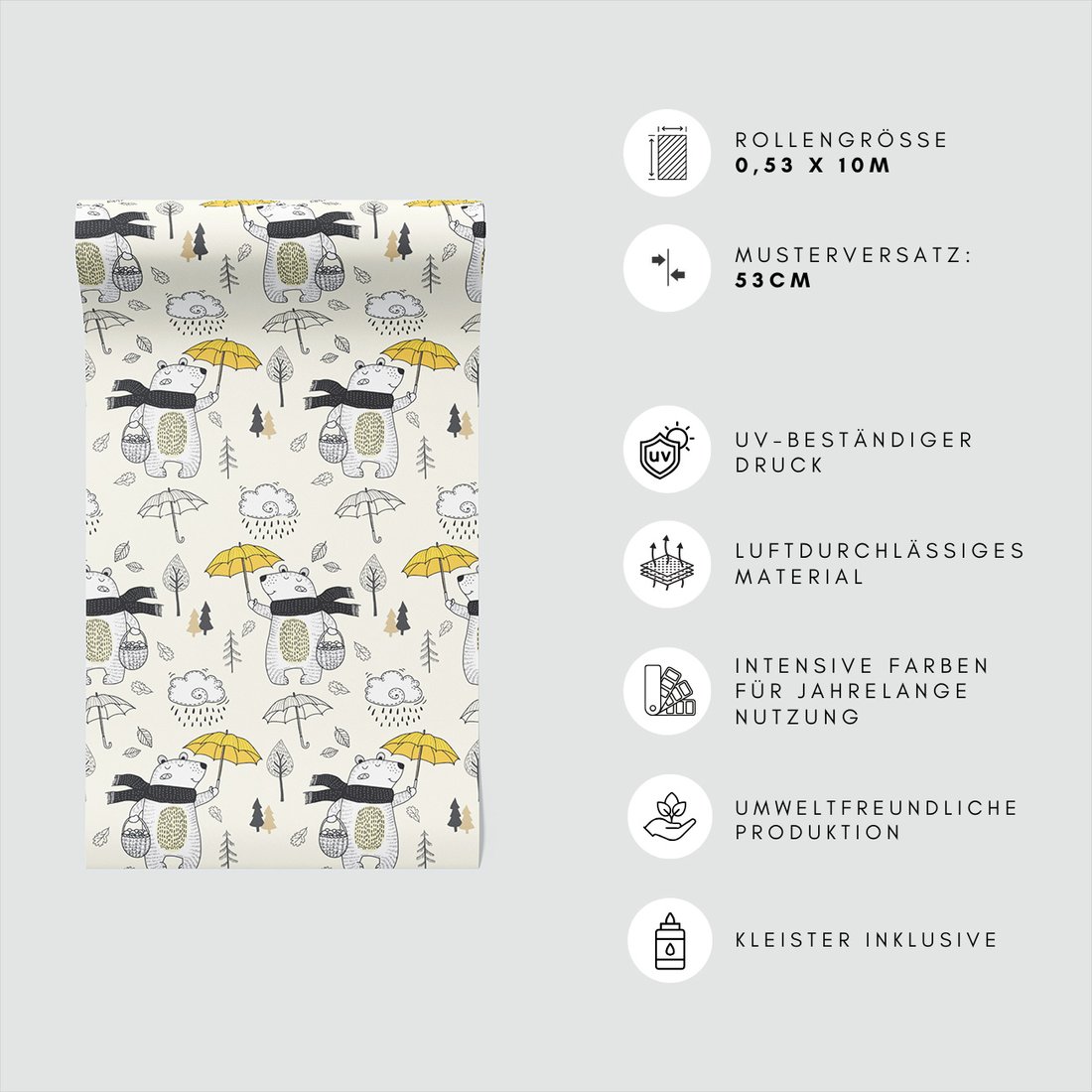 Odkryj piękno i funkcjonalność tapety z motywem dziecięca, niedźwiedź, parasol, drzewo. To połączenie wyjątkowego wzornictwa z łatwością aplikacji, doskonałe do każdego pomieszczenia.