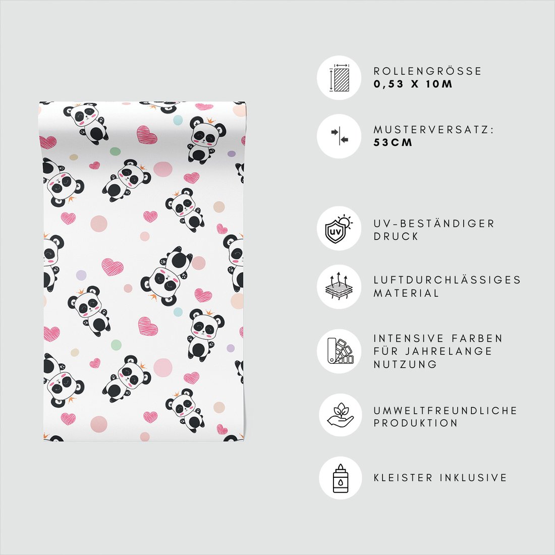 Odkryj piękno i funkcjonalność tapety z motywem dziecięca, panda, serca, korony. To połączenie wyjątkowego wzornictwa z łatwością aplikacji, doskonałe do każdego pomieszczenia.