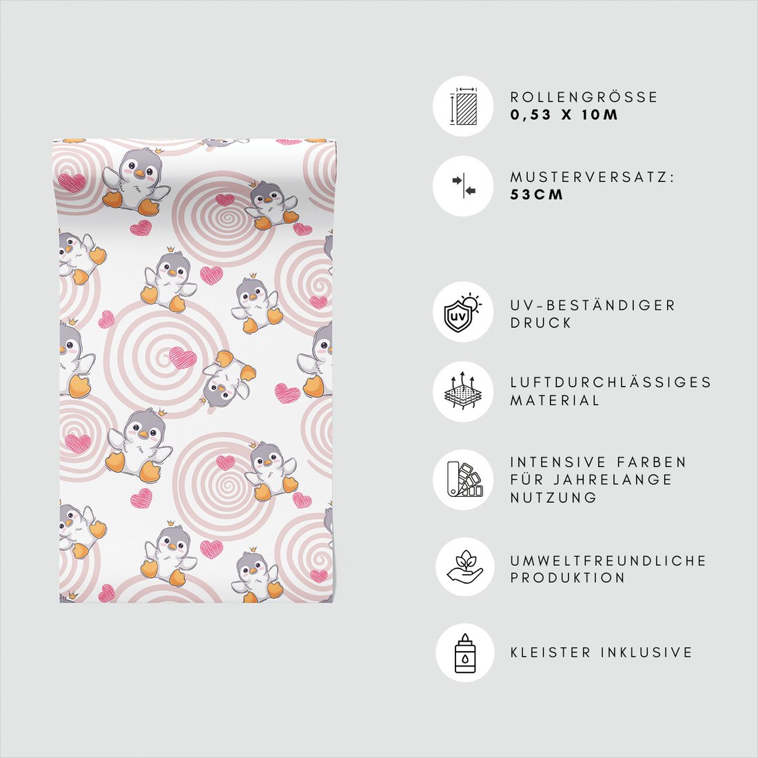 Odkryj piękno i funkcjonalność tapety z motywem dziecięca, pingwiny, korona, serca. To połączenie wyjątkowego wzornictwa z łatwością aplikacji, doskonałe do każdego pomieszczenia.