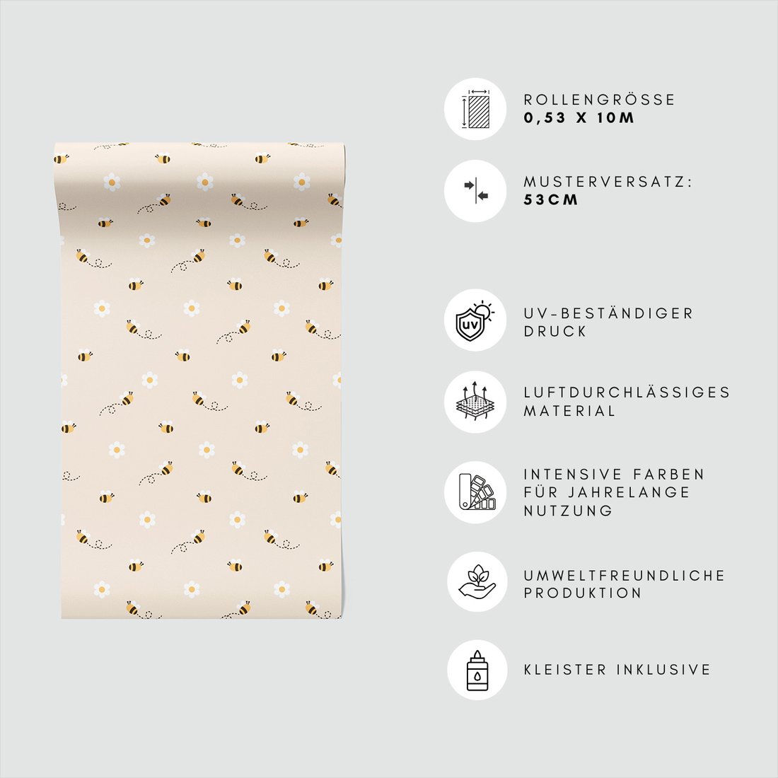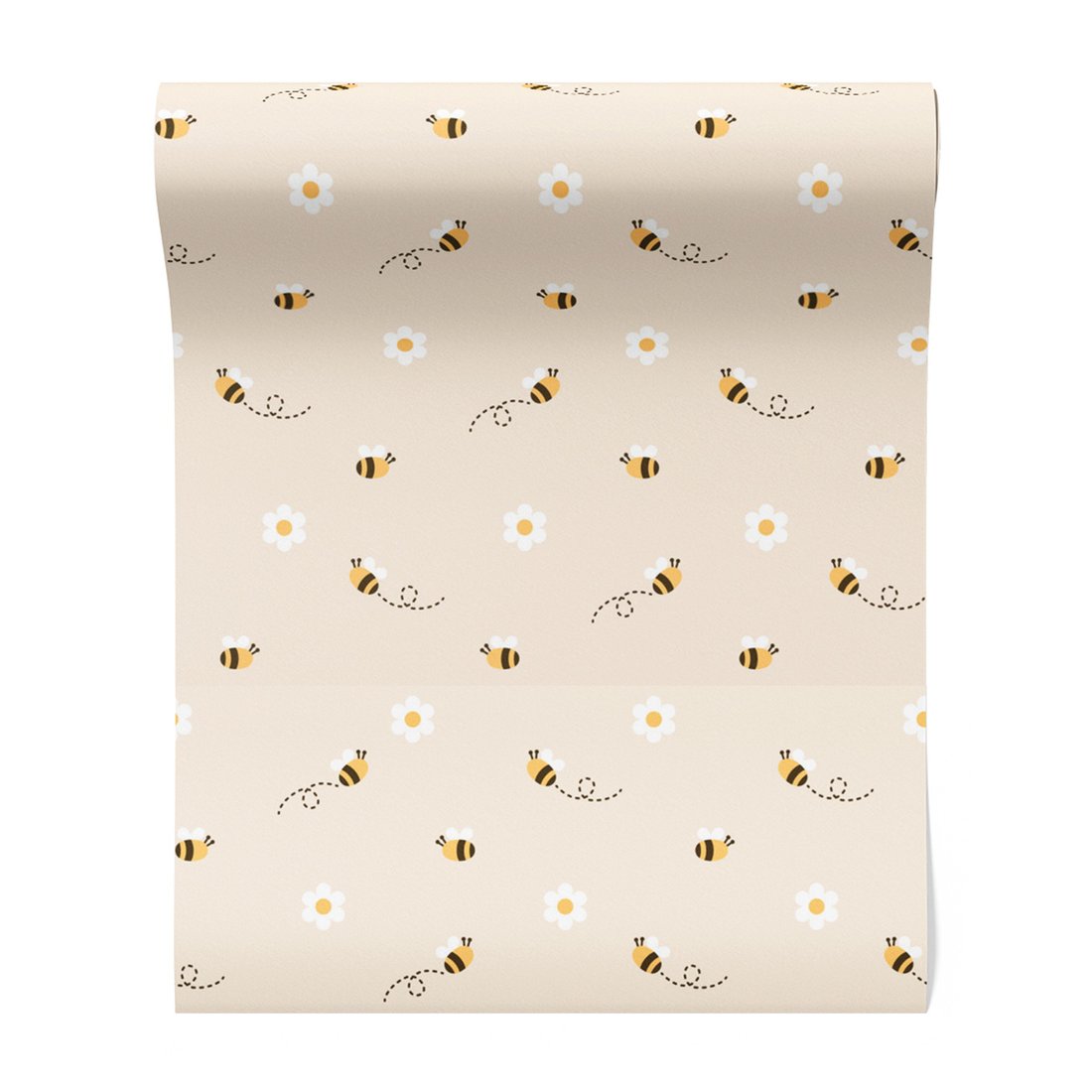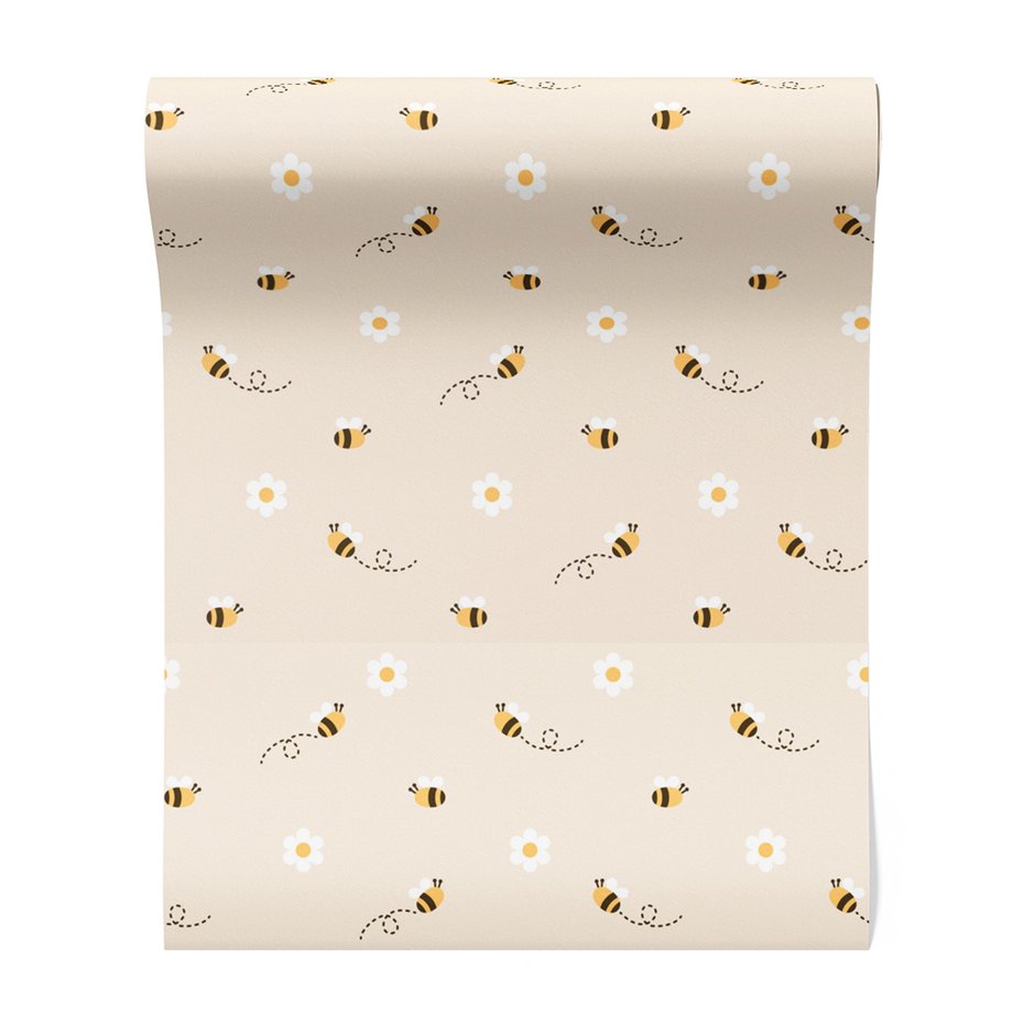 - Tapeta - dziecięca, pszczoły, kwiaty,