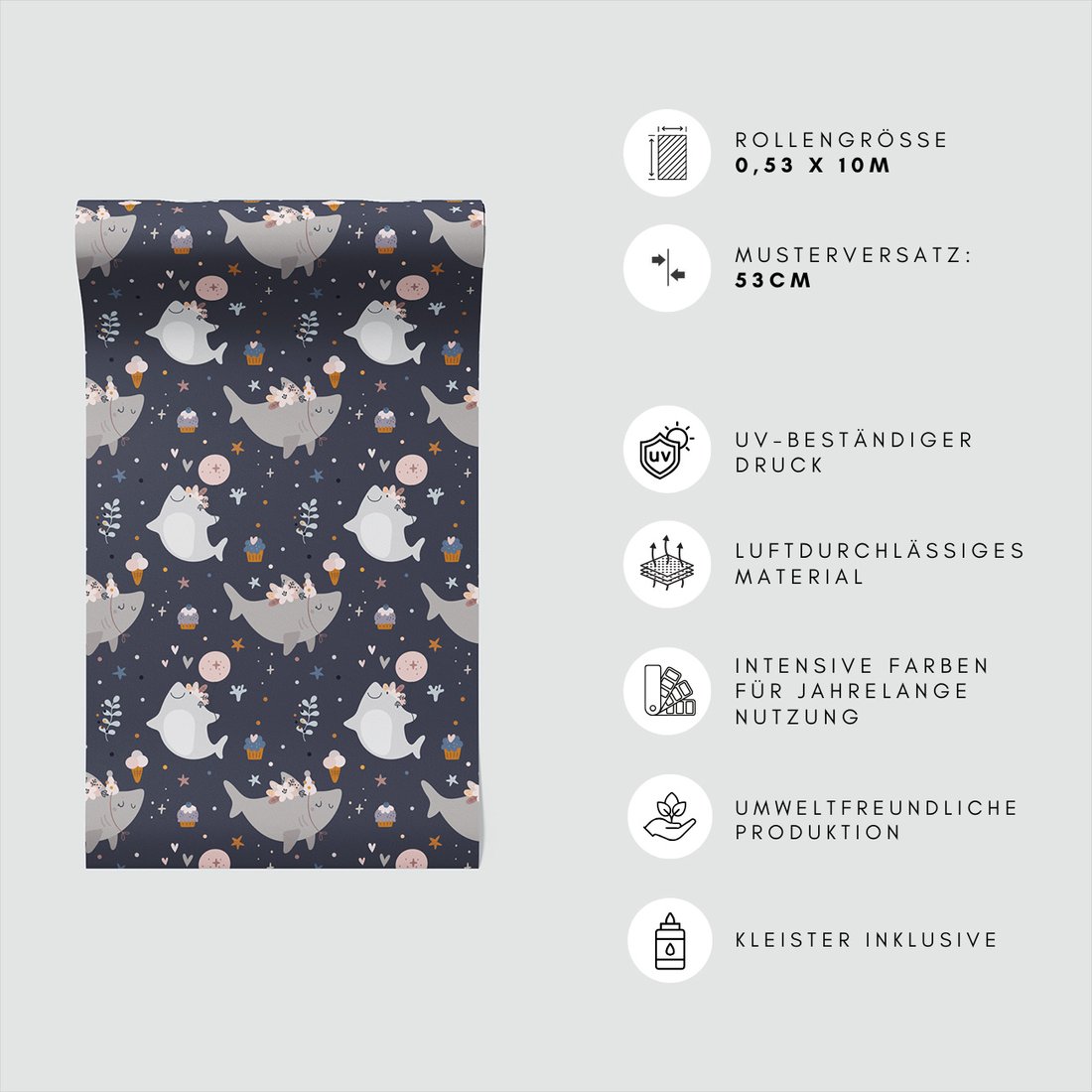 Odkryj piękno i funkcjonalność tapety z motywem dziecięca, rekin, babeczka, gwiazdy. To połączenie wyjątkowego wzornictwa z łatwością aplikacji, doskonałe do każdego pomieszczenia.