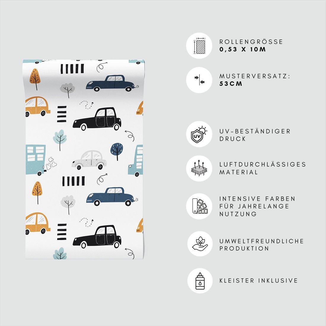 Odkryj piękno i funkcjonalność tapety z motywem dziecięca, samochody, drzewa, pasy. To połączenie wyjątkowego wzornictwa z łatwością aplikacji, doskonałe do każdego pomieszczenia.