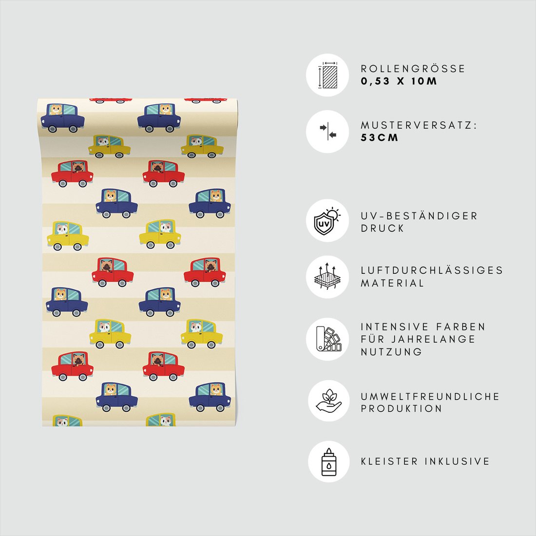 Odkryj piękno i funkcjonalność tapety z motywem dziecięca, samochody, koty, tło. To połączenie wyjątkowego wzornictwa z łatwością aplikacji, doskonałe do każdego pomieszczenia.