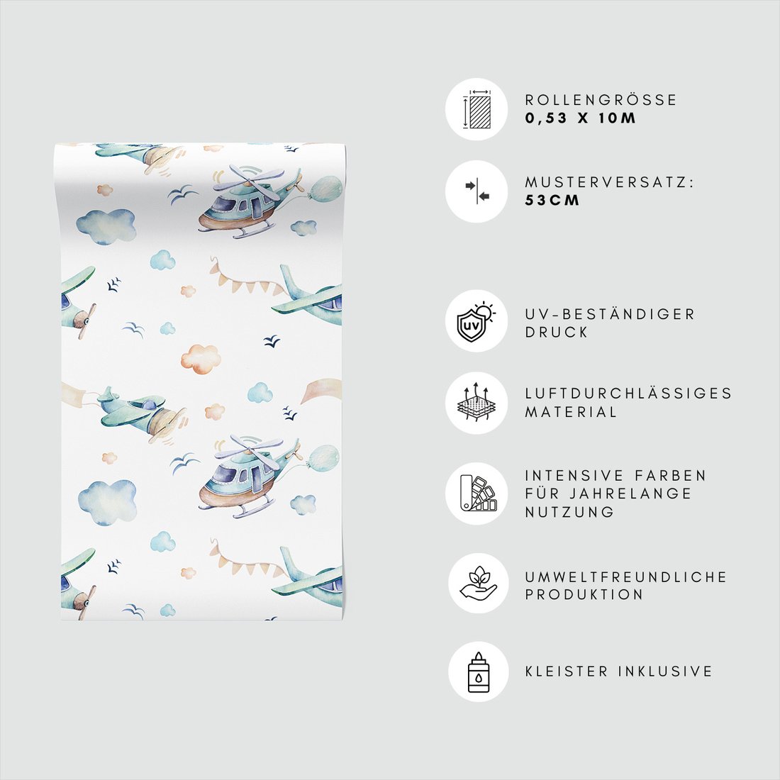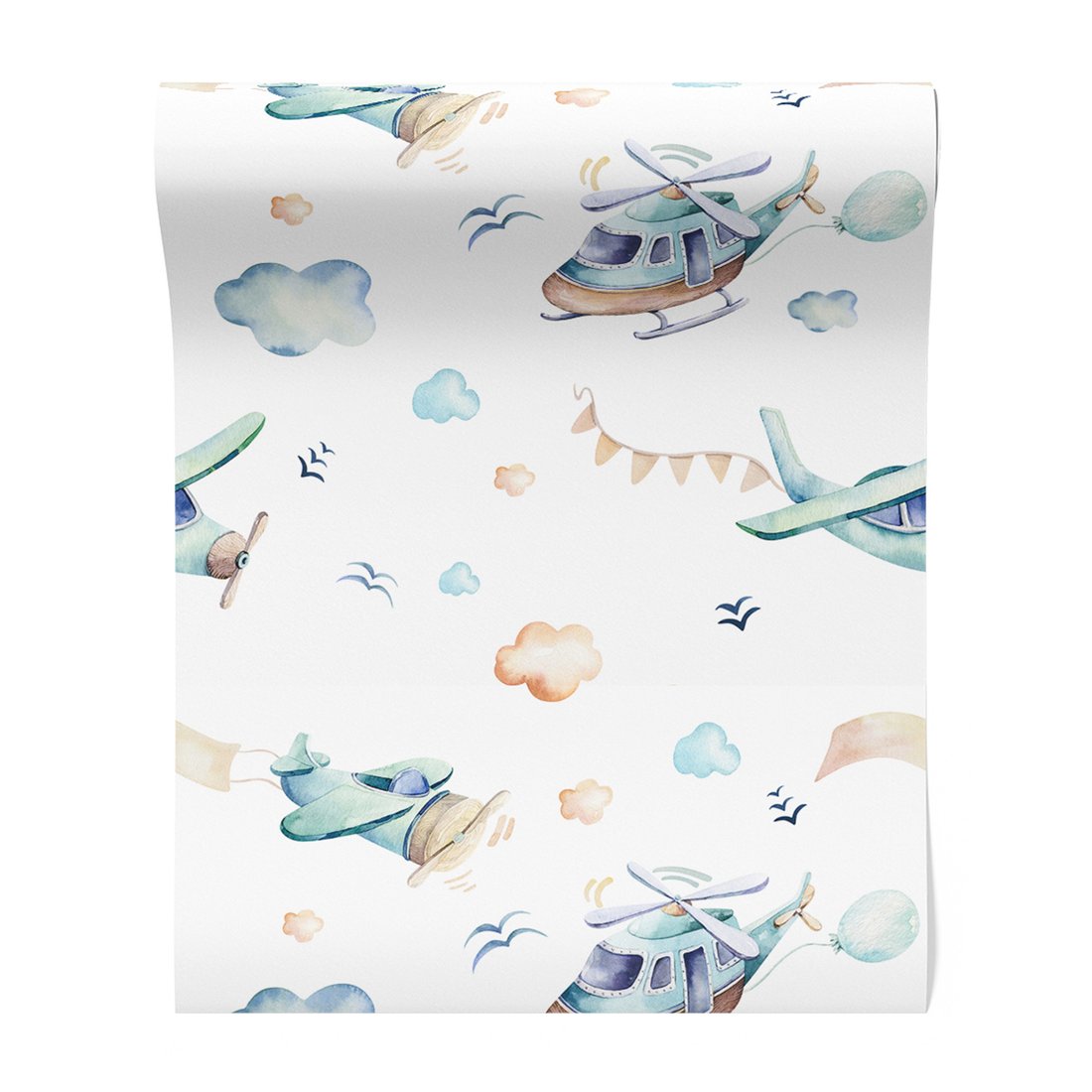 - Tapeta - dziecięca, samoloty, helikopter, chmury