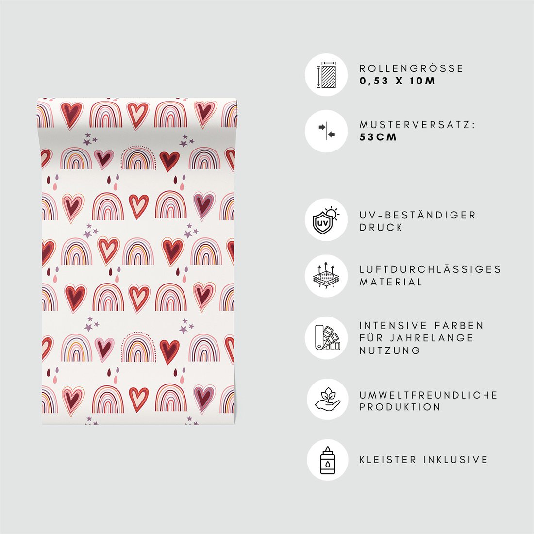 Tapeta - dziecięca, serca, tęcze, gwiazdy