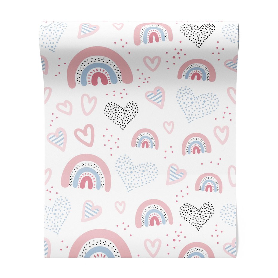 - Tapeta - dziecięca, serca, tęcze, kropki
