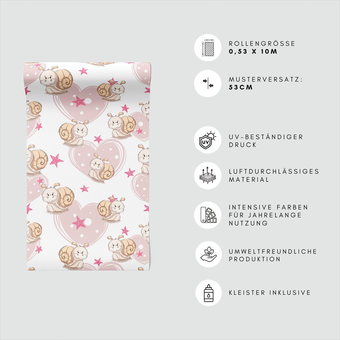 Odkryj piękno i funkcjonalność tapety z motywem dziecięca, ślimak, serce, gwiazda. To połączenie wyjątkowego wzornictwa z łatwością aplikacji, doskonałe do każdego pomieszczenia.