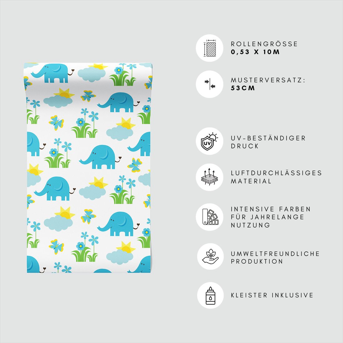 Odkryj piękno i funkcjonalność tapety z motywem dziecięca, słoń, motyl, kwiat. To połączenie wyjątkowego wzornictwa z łatwością aplikacji, doskonałe do każdego pomieszczenia.