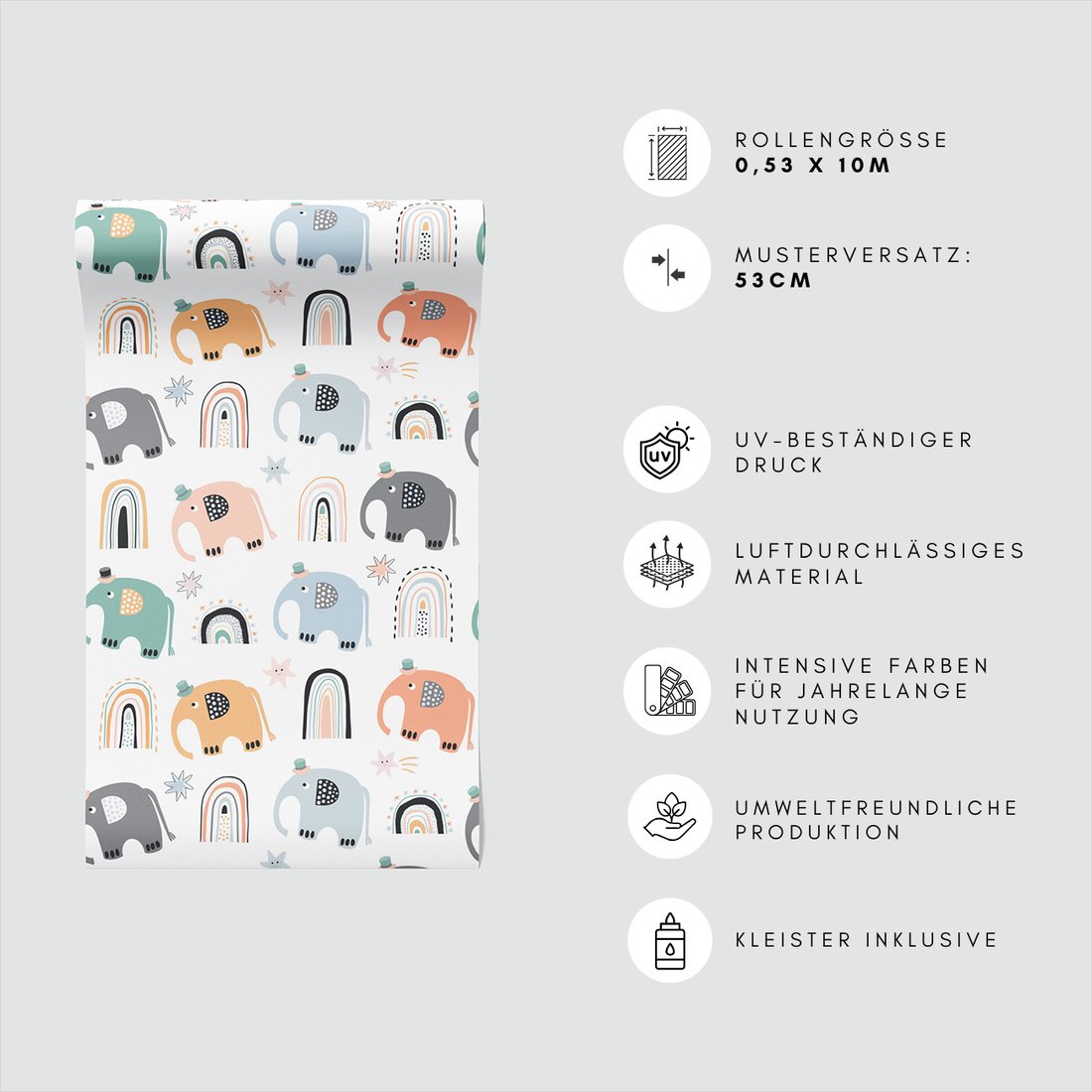 Odkryj piękno i funkcjonalność tapety z motywem dziecięca, słonie, tęcze, gwiazdy. To połączenie wyjątkowego wzornictwa z łatwością aplikacji, doskonałe do każdego pomieszczenia.