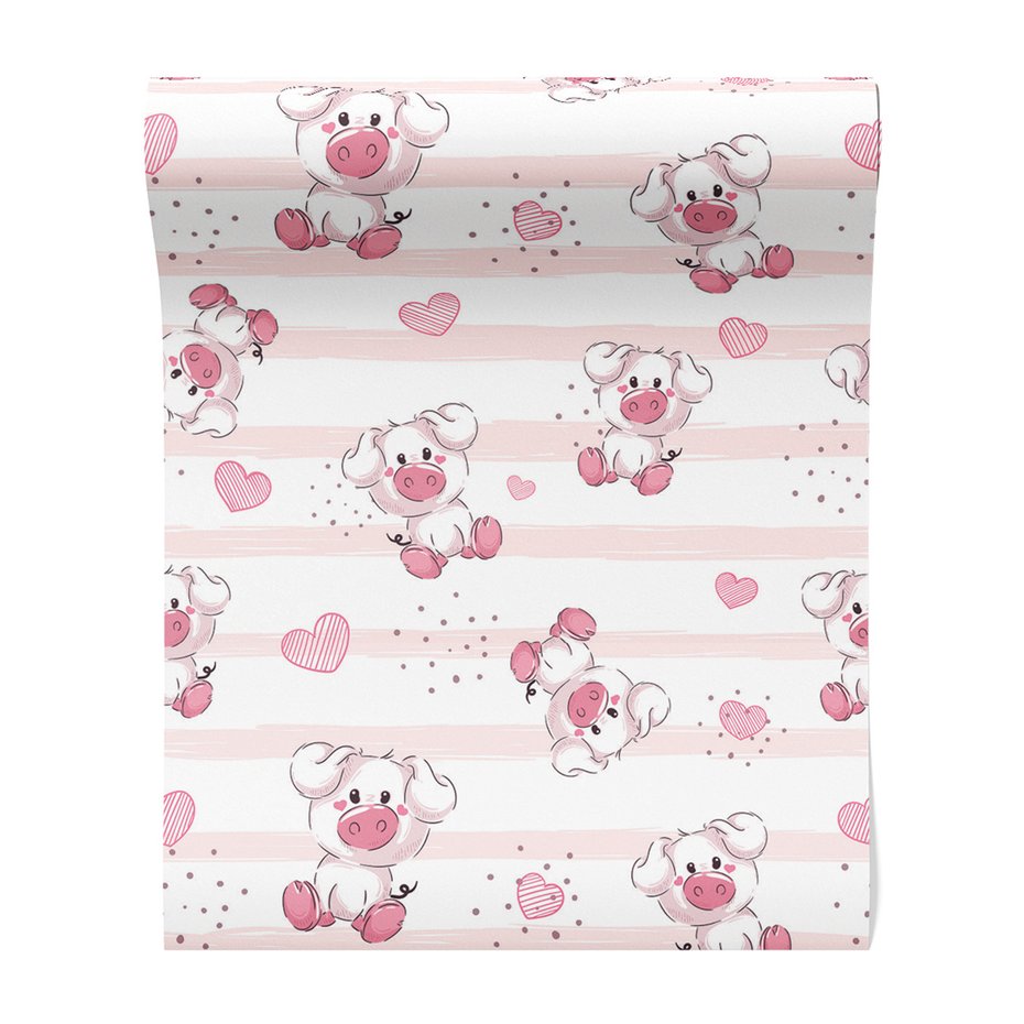 Tapeta - dziecięca, świnka, serca, kropki