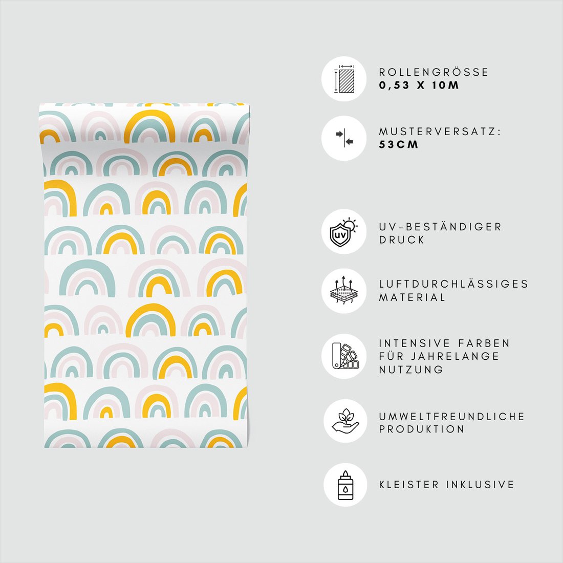 Odkryj piękno i funkcjonalność tapety z motywem dziecięca, tęcza, wzór, powtarzalność. To połączenie wyjątkowego wzornictwa z łatwością aplikacji, doskonałe do każdego pomieszczenia.