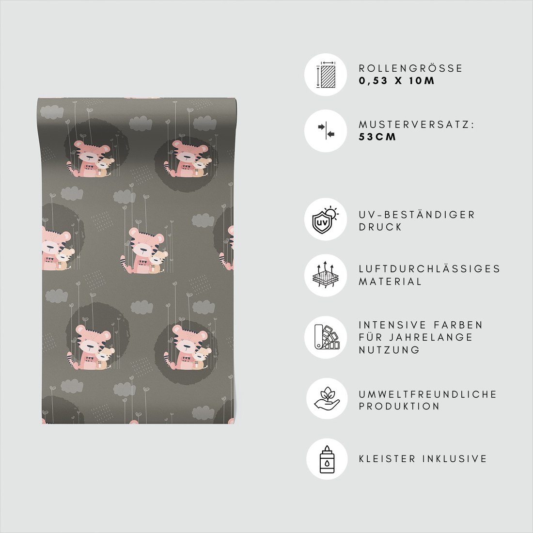Odkryj piękno i funkcjonalność tapety z motywem dziecięca, tygrysy, miłość, chmury. To połączenie wyjątkowego wzornictwa z łatwością aplikacji, doskonałe do każdego pomieszczenia.