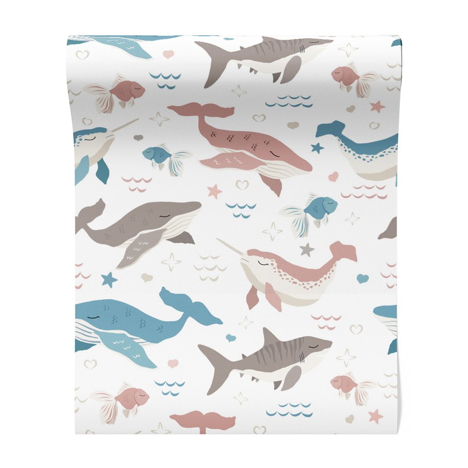 - Tapeta - dziecięca, wieloryb, ryba, rekin