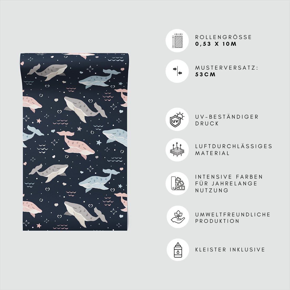 Odkryj piękno i funkcjonalność tapety z motywem dziecięca, wieloryby, gwiazdy, serca. To połączenie wyjątkowego wzornictwa z łatwością aplikacji, doskonałe do każdego pomieszczenia.