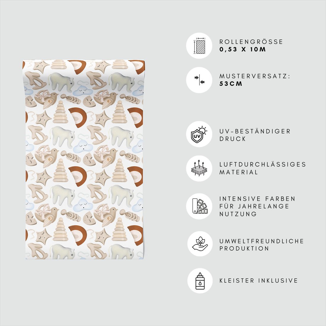Tapeta - dziecięca, zabawki, zwierzęta,