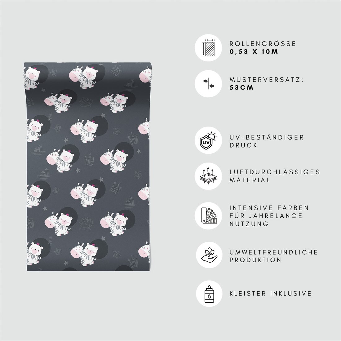 Odkryj piękno i funkcjonalność tapety z motywem dziecięca, zebra, miś, korona. To połączenie wyjątkowego wzornictwa z łatwością aplikacji, doskonałe do każdego pomieszczenia.