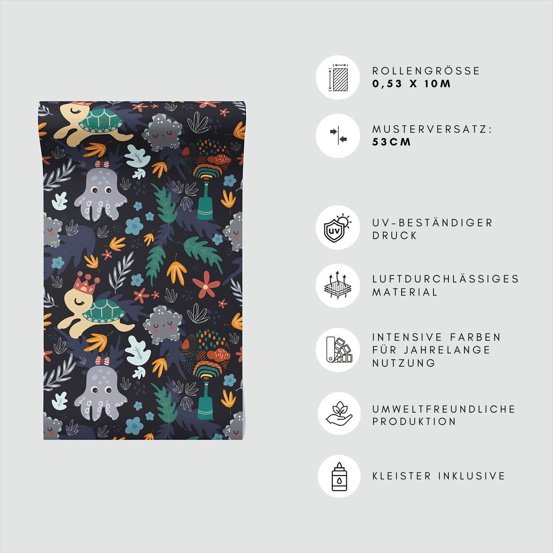 Odkryj piękno i funkcjonalność tapety z motywem dziecięca, żółw, ośmiornica, liście. To połączenie wyjątkowego wzornictwa z łatwością aplikacji, doskonałe do każdego pomieszczenia.