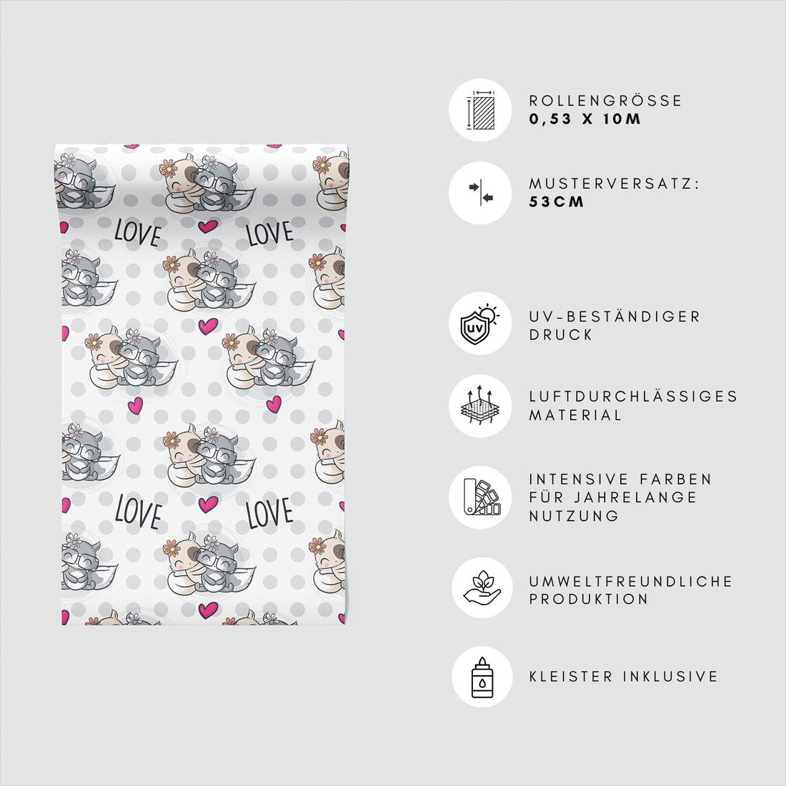 Odkryj piękno i funkcjonalność tapety z motywem dziecięca, zwierzęta, serca, miłość. To połączenie wyjątkowego wzornictwa z łatwością aplikacji, doskonałe do każdego pomieszczenia.