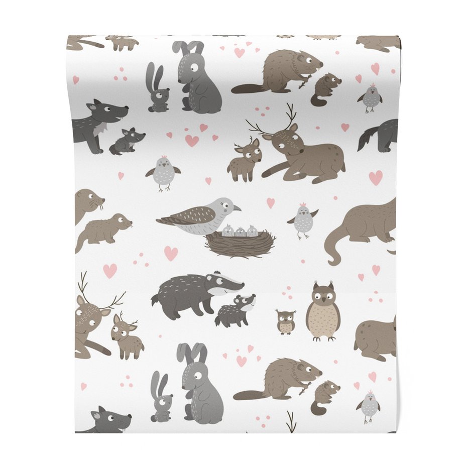 • Tapeta - dziecięca, zwierzęta, wzór, serca