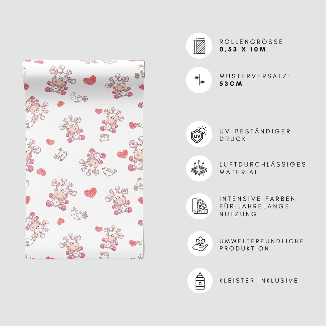 Odkryj piękno i funkcjonalność tapety z motywem dziecięca, żyrafa, ptak, serce. To połączenie wyjątkowego wzornictwa z łatwością aplikacji, doskonałe do każdego pomieszczenia.