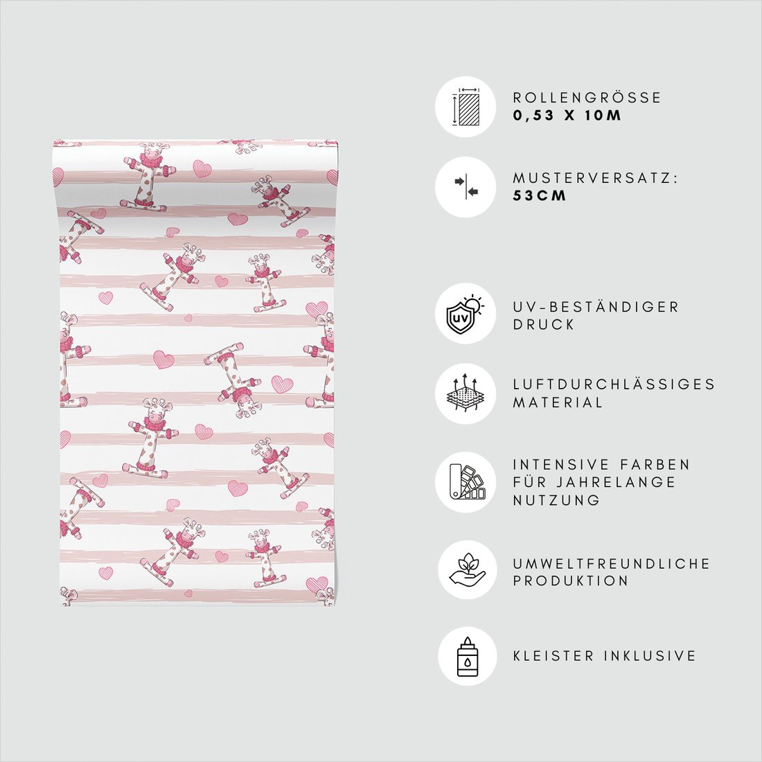 Odkryj piękno i funkcjonalność tapety z motywem dziecięca, żyrafa, serce, paski. To połączenie wyjątkowego wzornictwa z łatwością aplikacji, doskonałe do każdego pomieszczenia.
