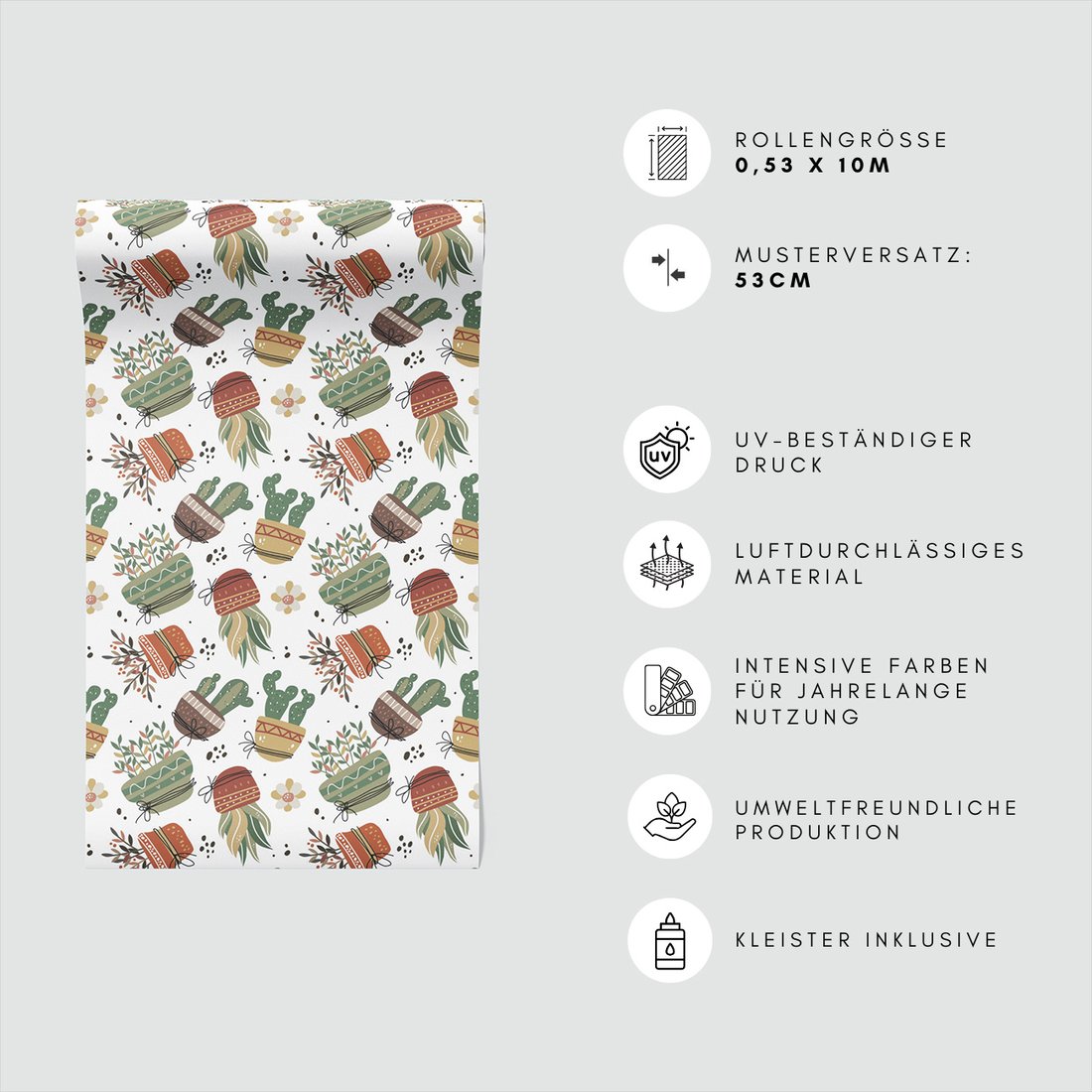 Odkryj piękno i funkcjonalność tapety z motywem kwiaty, doniczka, kaktus. To połączenie wyjątkowego wzornictwa z łatwością aplikacji, doskonałe do każdego pomieszczenia.