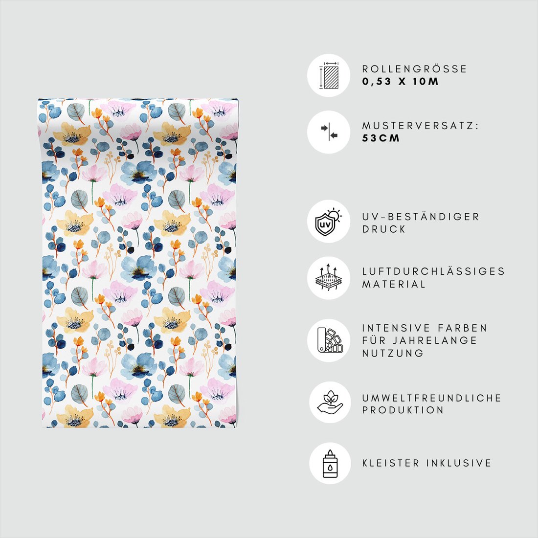 Odkryj piękno i funkcjonalność tapety z motywem kwiaty, liście, akwarela. To połączenie wyjątkowego wzornictwa z łatwością aplikacji, doskonałe do każdego pomieszczenia.