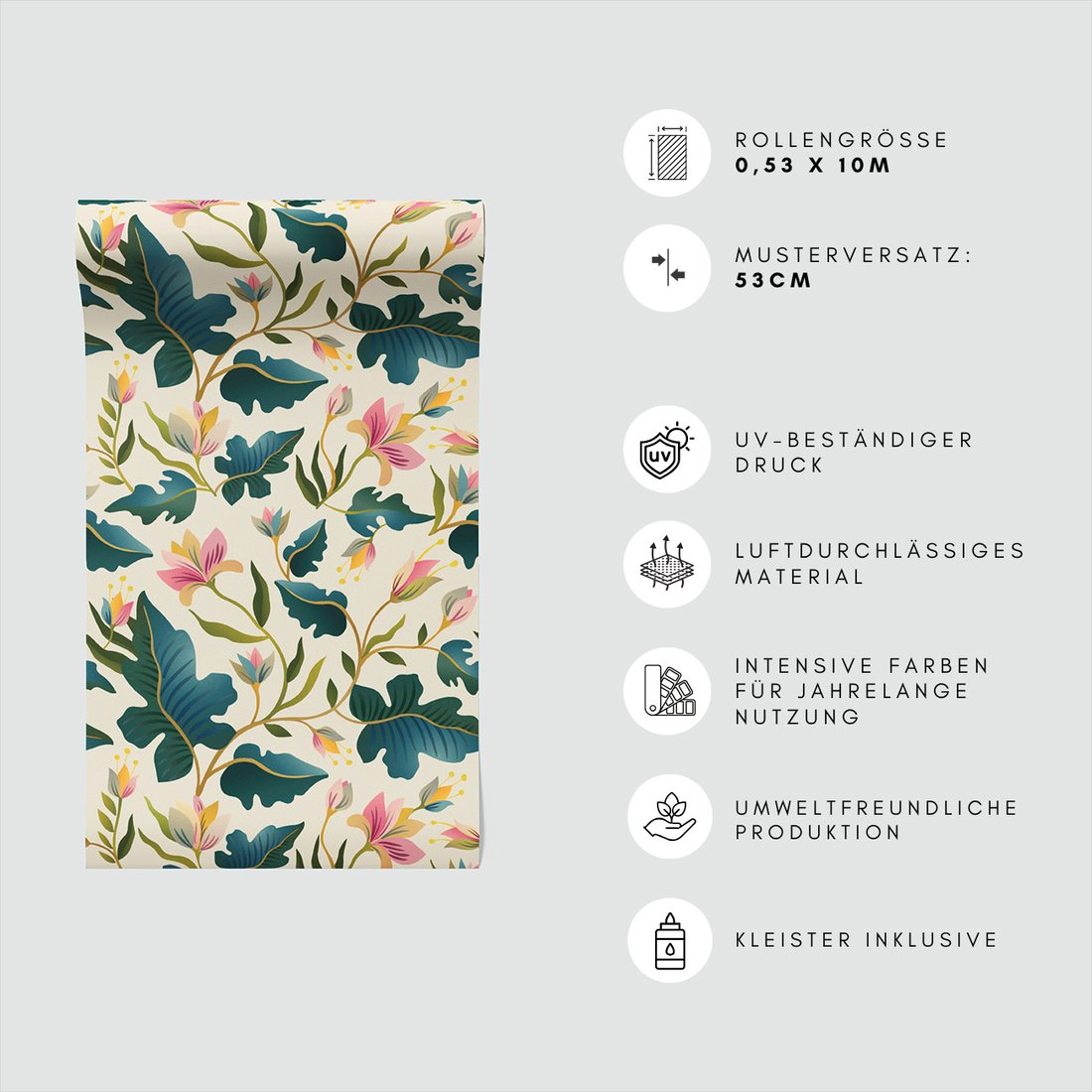Odkryj piękno i funkcjonalność tapety z motywem kwiaty, liście, gałązki. To połączenie wyjątkowego wzornictwa z łatwością aplikacji, doskonałe do każdego pomieszczenia.