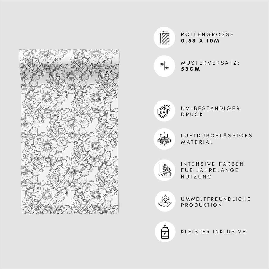 Odkryj piękno i funkcjonalność tapety z motywem kwiaty, liście, jagody. To połączenie wyjątkowego wzornictwa z łatwością aplikacji, doskonałe do każdego pomieszczenia.