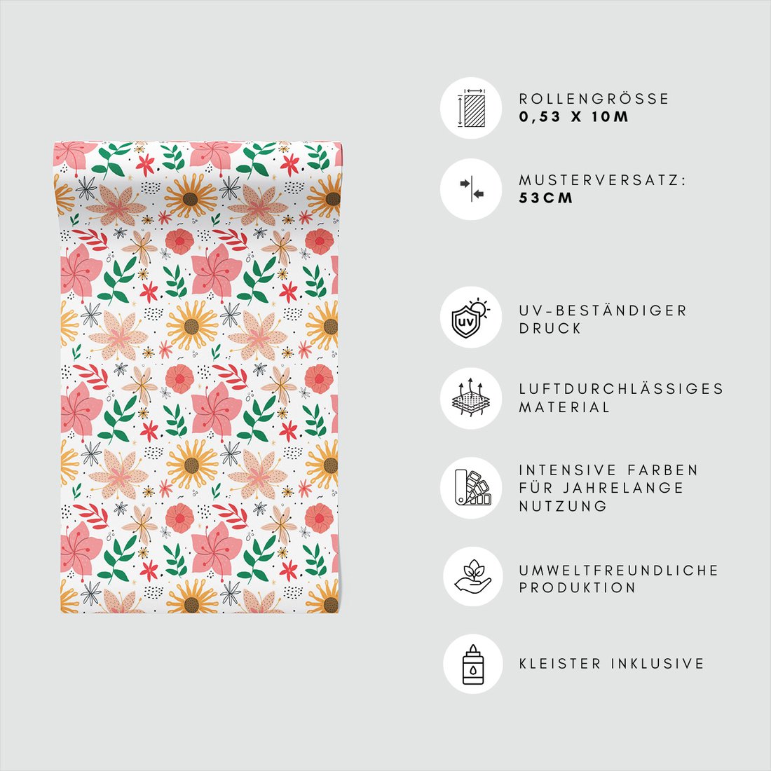 Odkryj piękno i funkcjonalność tapety z motywem kwiaty, liście, kropki. To połączenie wyjątkowego wzornictwa z łatwością aplikacji, doskonałe do każdego pomieszczenia.