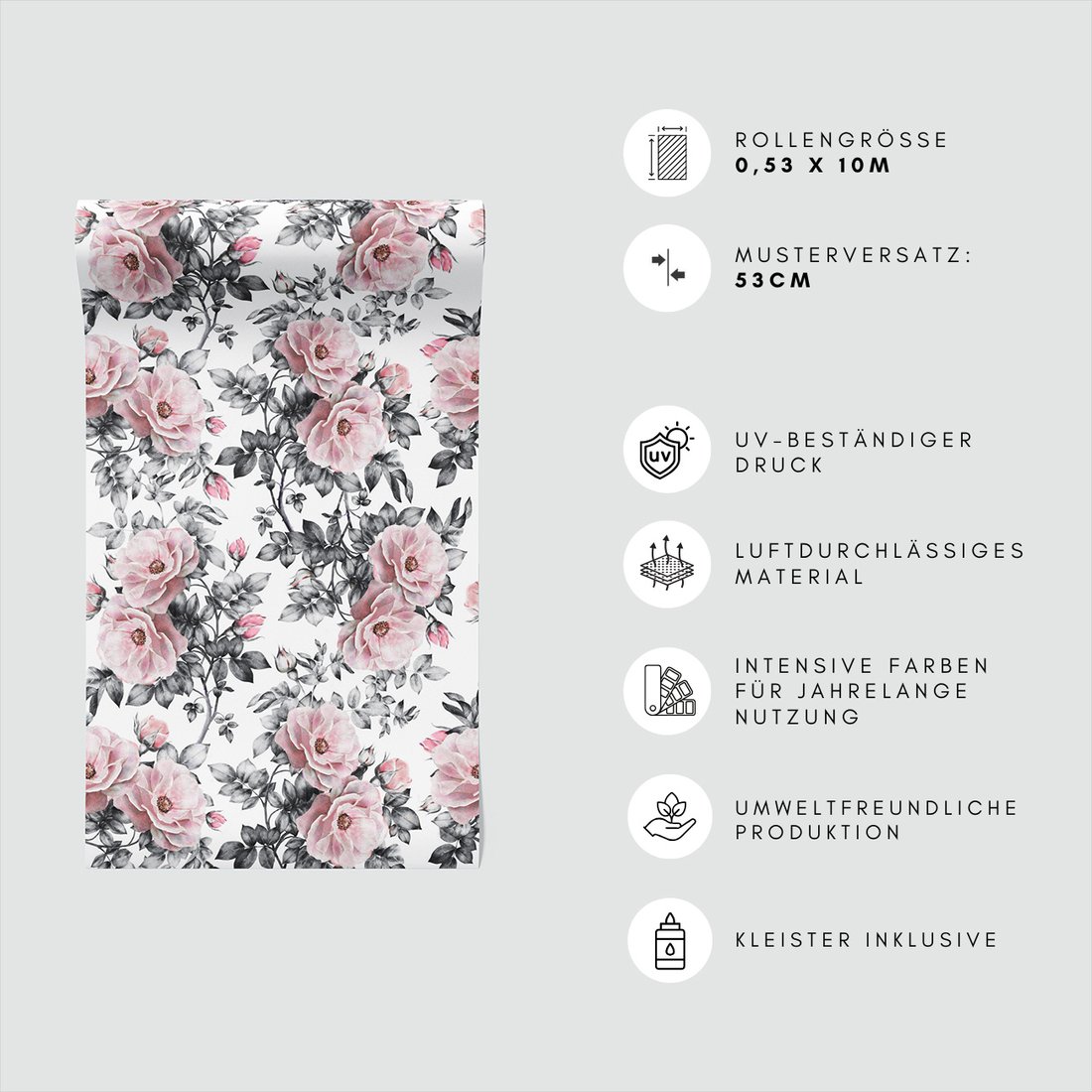 Odkryj piękno i funkcjonalność tapety z motywem kwiaty, liście, róże. To połączenie wyjątkowego wzornictwa z łatwością aplikacji, doskonałe do każdego pomieszczenia.