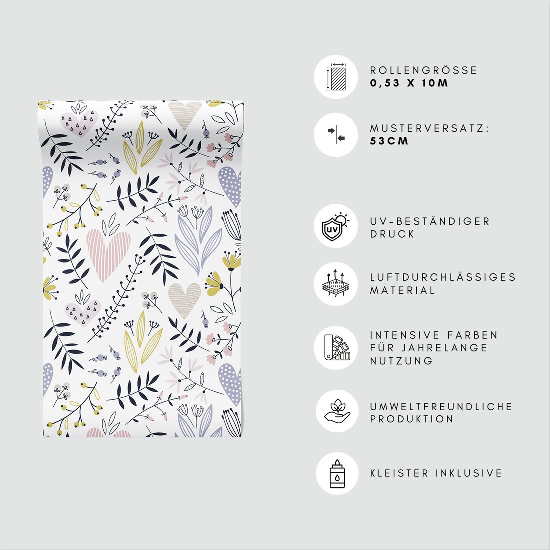 Odkryj piękno i funkcjonalność tapety z motywem kwiaty, liście, serca. To połączenie wyjątkowego wzornictwa z łatwością aplikacji, doskonałe do każdego pomieszczenia.