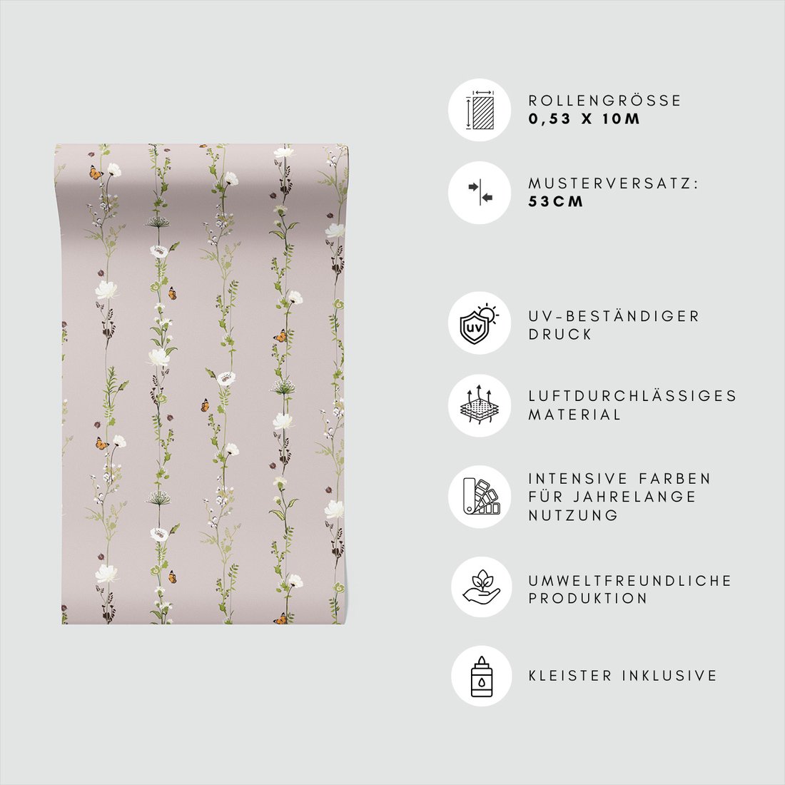 Odkryj piękno i funkcjonalność tapety z motywem kwiaty, motyle, rośliny. To połączenie wyjątkowego wzornictwa z łatwością aplikacji, doskonałe do każdego pomieszczenia.