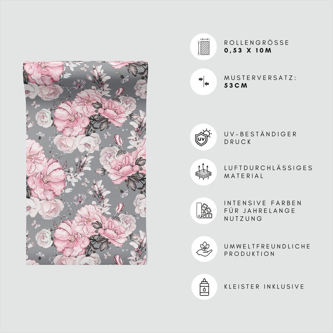 Odkryj piękno i funkcjonalność tapety z motywem kwiaty, róże, motyle. To połączenie wyjątkowego wzornictwa z łatwością aplikacji, doskonałe do każdego pomieszczenia.