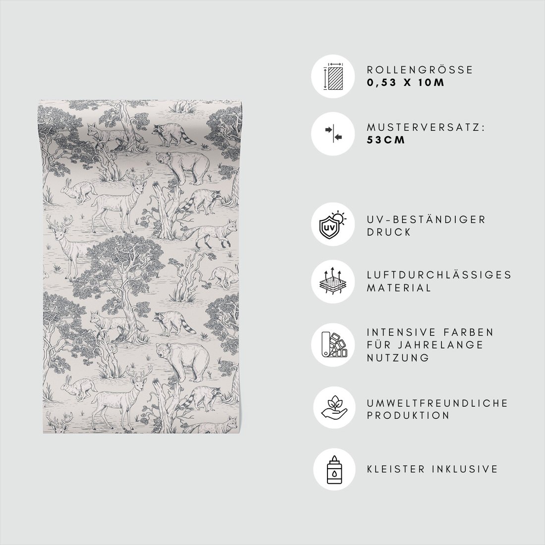 Odkryj piękno i funkcjonalność tapety z motywem las, zwierzęta, drzewa. To połączenie wyjątkowego wzornictwa z łatwością aplikacji, doskonałe do każdego pomieszczenia.