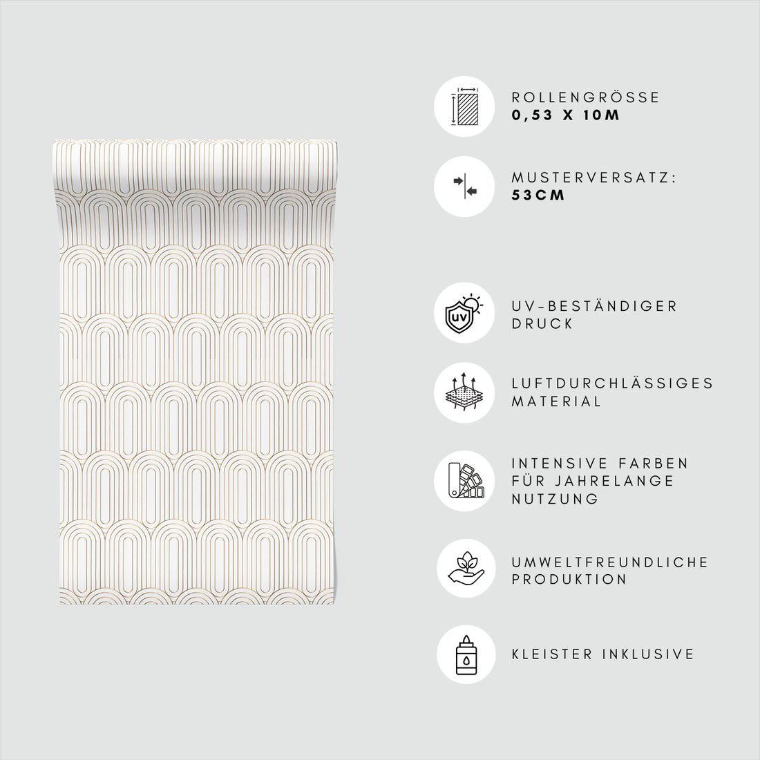 Odkryj piękno i funkcjonalność tapety z motywem linie, geometria, łuki. To połączenie wyjątkowego wzornictwa z łatwością aplikacji, doskonałe do każdego pomieszczenia.