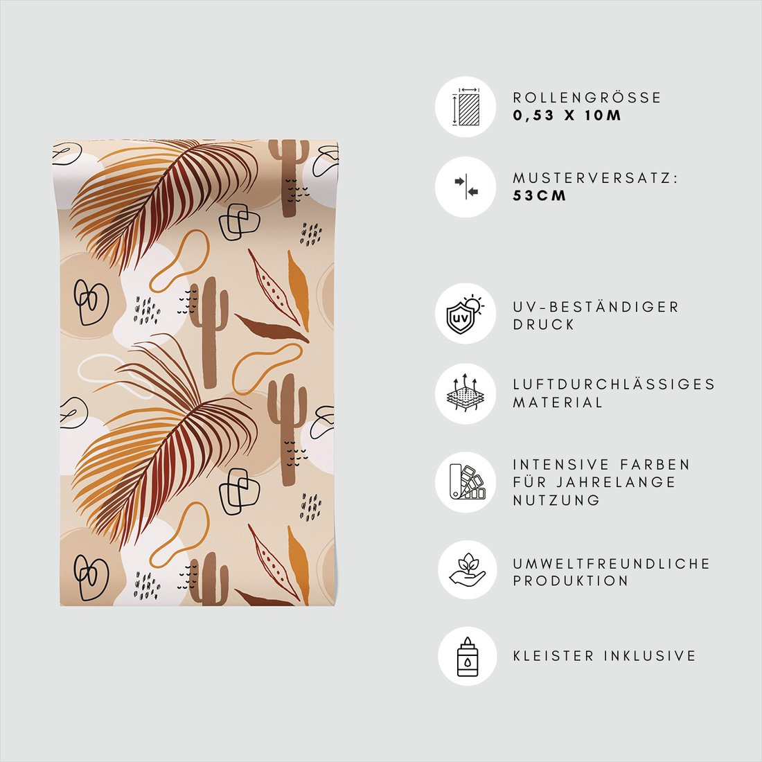 Odkryj piękno i funkcjonalność tapety z motywem liść, kaktus, abstrakcja. To połączenie wyjątkowego wzornictwa z łatwością aplikacji, doskonałe do każdego pomieszczenia.