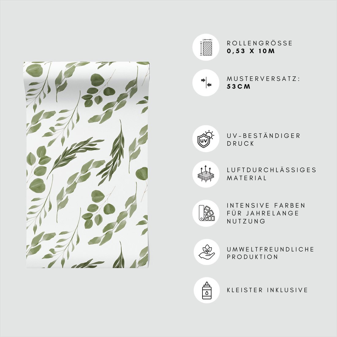 Odkryj piękno i funkcjonalność tapety z motywem liście, gałązki, eukaliptus. To połączenie wyjątkowego wzornictwa z łatwością aplikacji, doskonałe do każdego pomieszczenia.